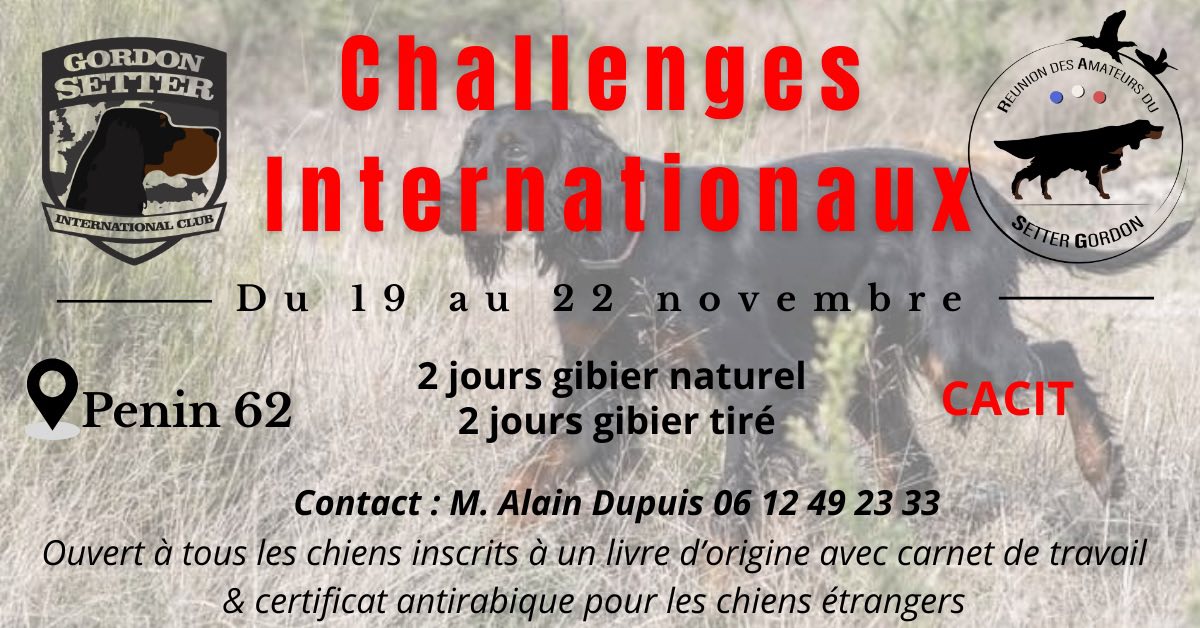 Le Setter Gordon Club International -S.G.C.I. a mis en place deux challenges internationaux appelés : Challenge Gibier Naturel et Challenge Gibier Tiré visant à récompenser les qualités cynophiles des sujets participants.