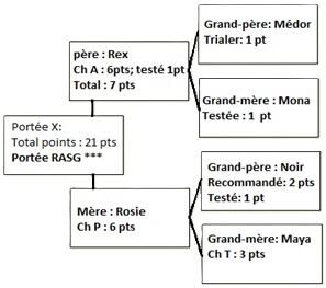 Pour le calcul des points, seul le plus haut titre compte (ex : chien CHCS et trialer : 9 pts pour père et/ou mère et non 11pts).